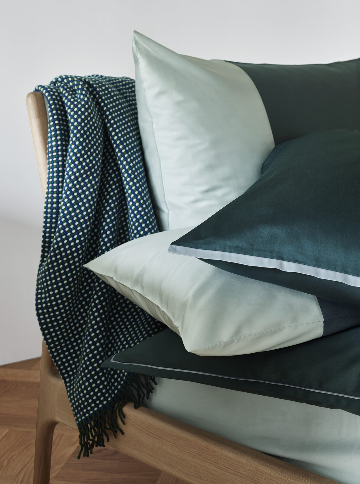 ALLEN ist eine Komposition aus zwei Farben. Die ruhigen Flächen der Satin Noblesse Bettwäsche vereinen sich durch eine Naht zum zweifarbigen Miteinander. Die Bettwäsche mit der Hauptfarbe weiss gibt es in Kombination mit den zeitlosen Farben glace und sable.