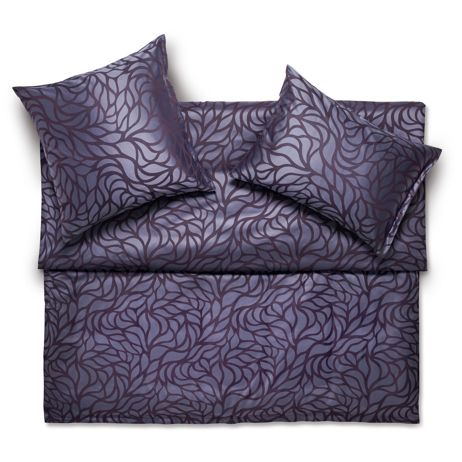 Hochwertiges, stückgefärbtes Jacquard-Gewebe aus 100% Baumwolle. Jacquard-Gewebe sind Stoffe mit formenreichen, eingewobenen Mustern. Die Musterungen beim Satin Exquisit entstehen durch das Abwechseln von Kett- und Schussfäden und treten je nach Lichteinfall reliefartig glänzend hervor (ca. 110 g/m2).