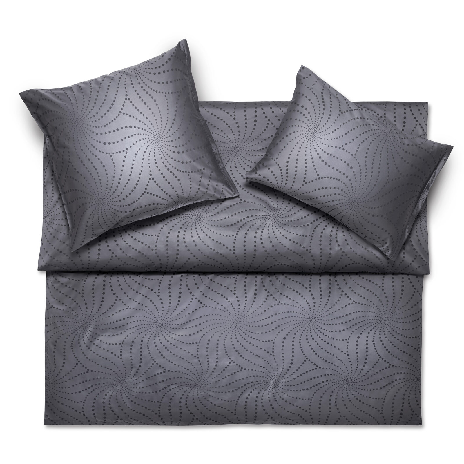Hochwertiges, stückgefärbtes Jacquard-Gewebe aus 100% Baumwolle. Jacquard-Gewebe sind Stoffe mit formenreichen, eingewobenen Mustern. Die Musterungen beim Satin Exquisit entstehen durch das Abwechseln von Kett- und Schussfäden und treten je nach Lichteinfall reliefartig glänzend hervor (ca. 110 g/m2).