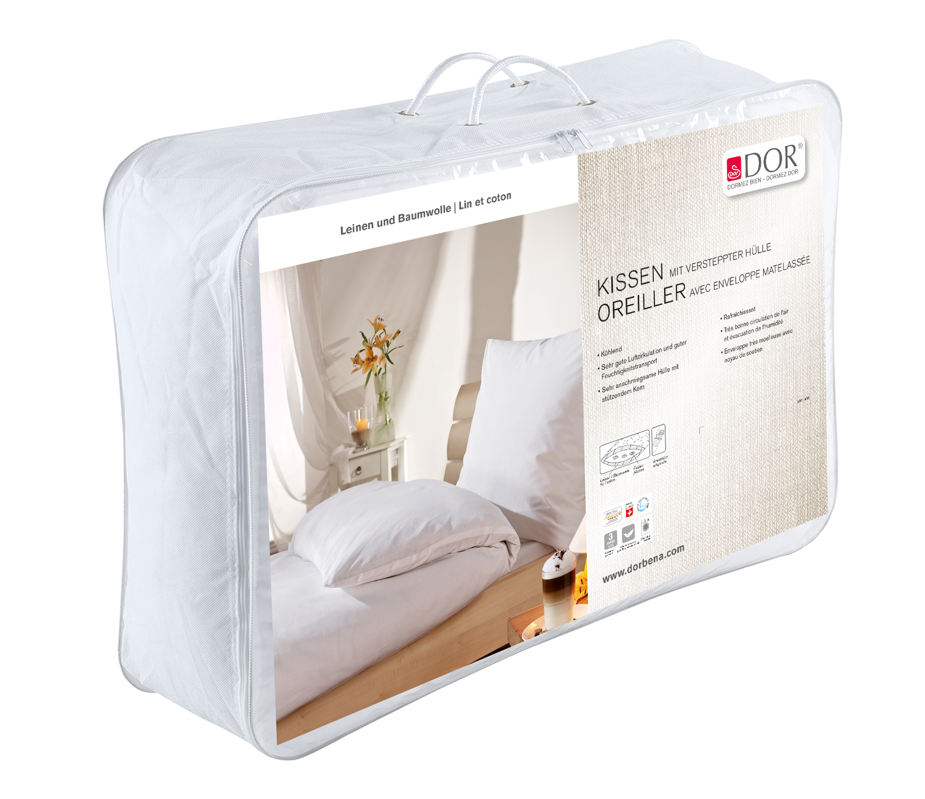 • Inhalt aussen: Leinen 60% / 40% Baumwolle Viskosefasern, versteppt / Inhalt Kern: neue, reine Entenfederchen weiss